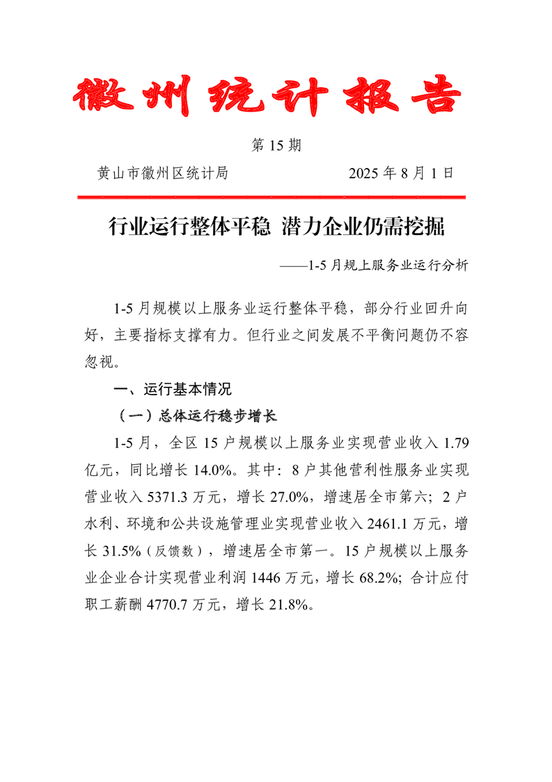分析解读:2025年1-5月徽州区规上服务业运行分析