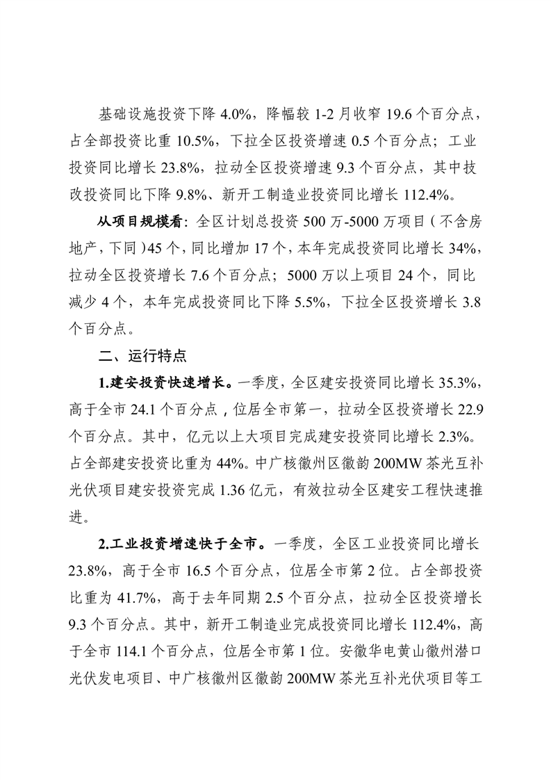 分析解读:2025年一季度徽州区固定资产投资运行情况分析