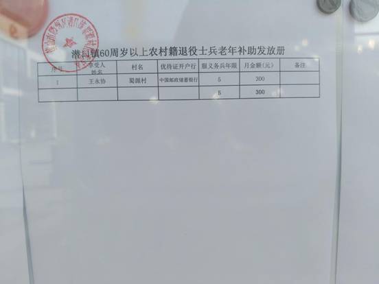 蜀源村8月60周岁以上农村籍退役士兵老年补助发放公示