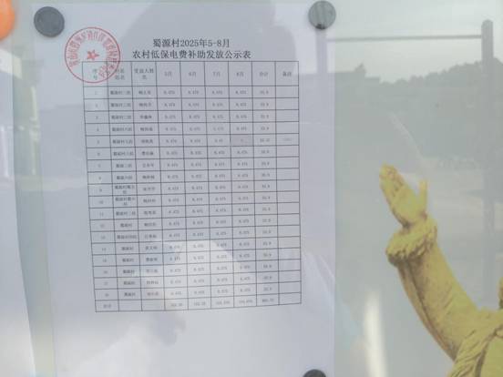 蜀源村2025年5-8月农村低保电费补助发放公示