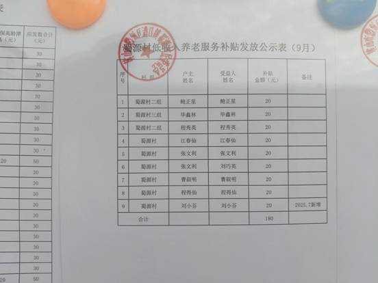 9月低收入养老服务补贴发放公示