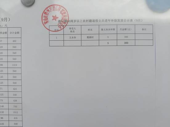 9月优抚对象定期补助费发放公示