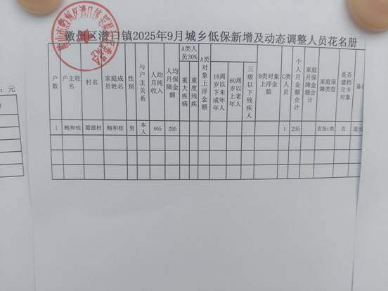 9月新增低保人员公示