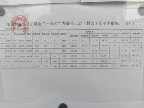 9月村组干部报酬公示