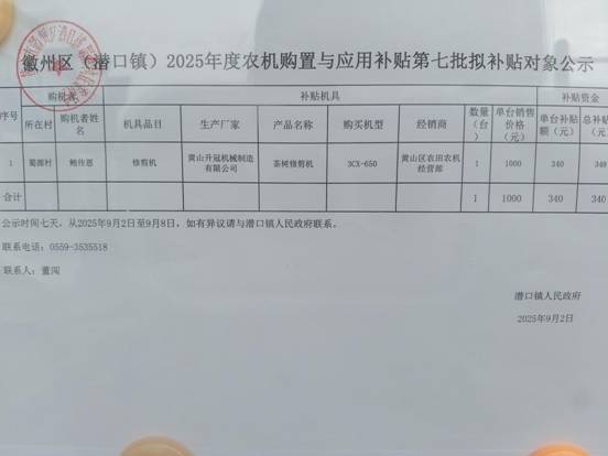 9月农机购置与应用补贴第七批补贴对象公示