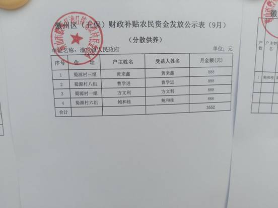 9月五保财政补贴农民资金发放公示