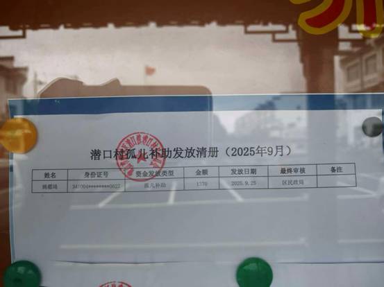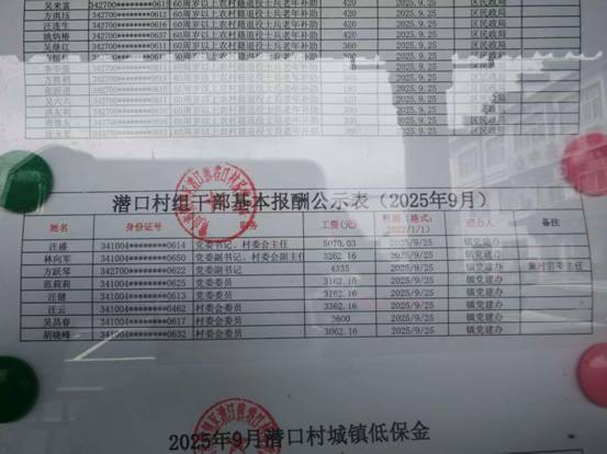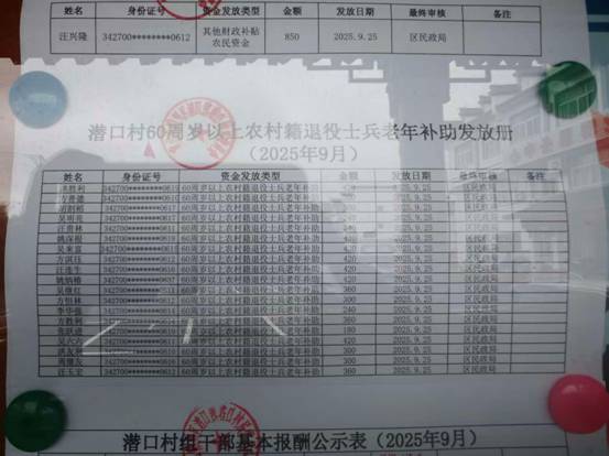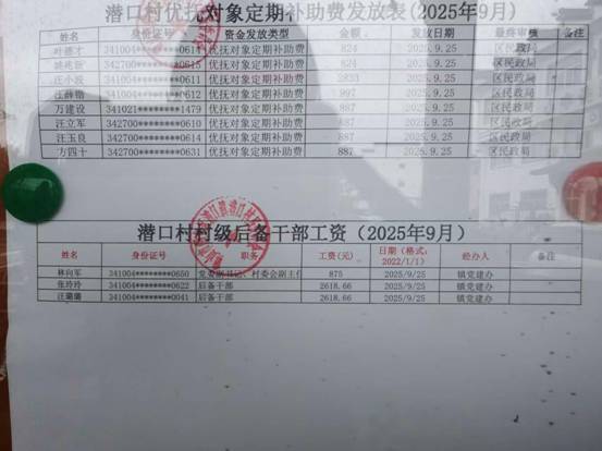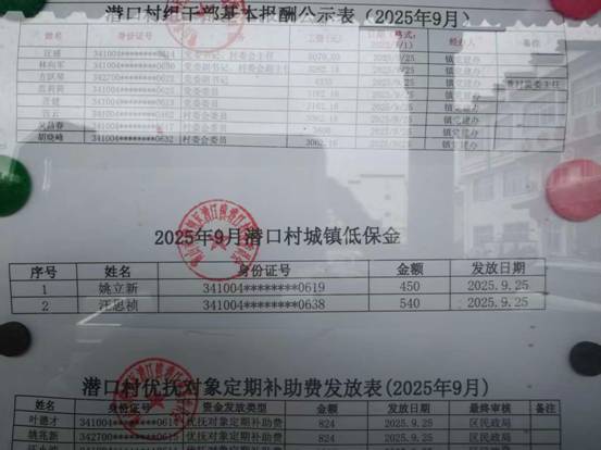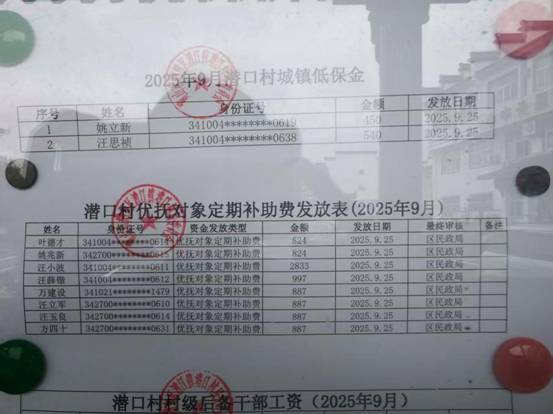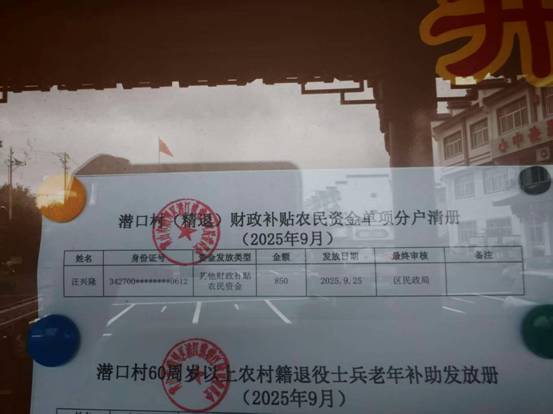 潜口村(城镇低保)财政补贴农民资金公示 |