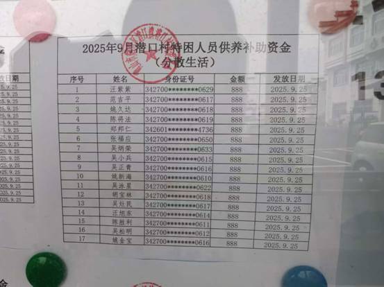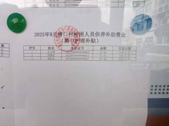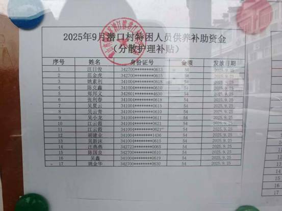 潜口村(五保集中供养-护理补贴)财政补贴农民资金公示 |