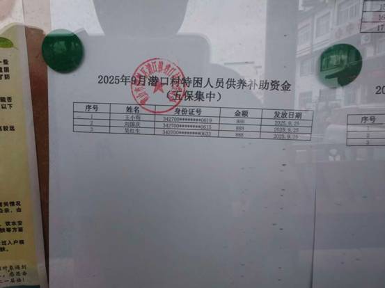 潜口村(五保分散供养护理补贴)财政补贴农民资金公示 |