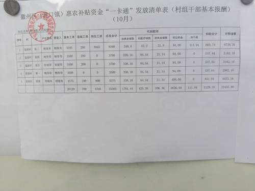 10月村组干部报酬公示