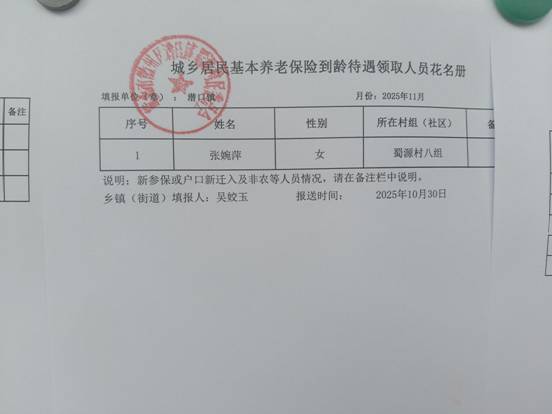 10月城乡居民基本养老保险到龄待遇领取人员公示