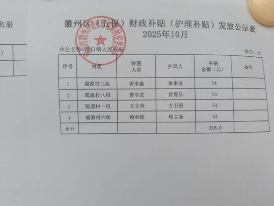 蜀源村10月高龄津贴发放公示