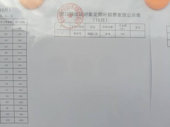 蜀源村10月优抚对象定期补助费发放公示表