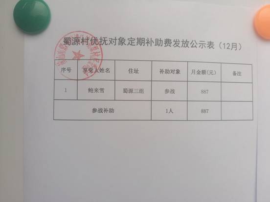 12月优抚对象定期补助费发放公示