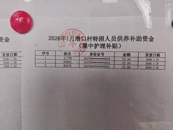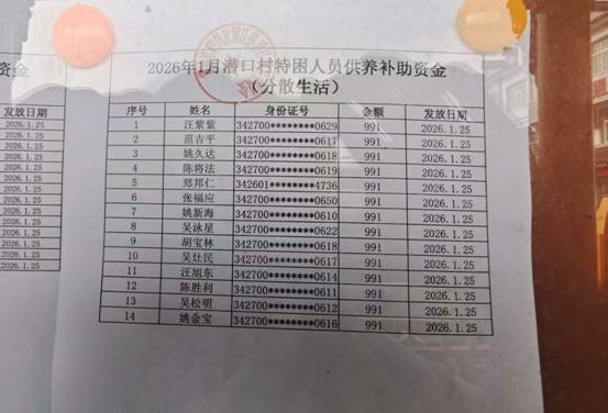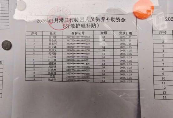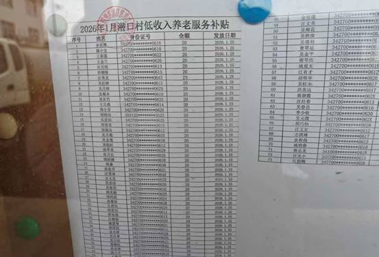 潜口村居家养老补助发放公示 |
