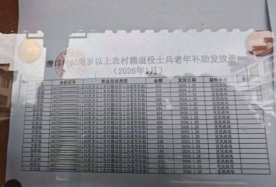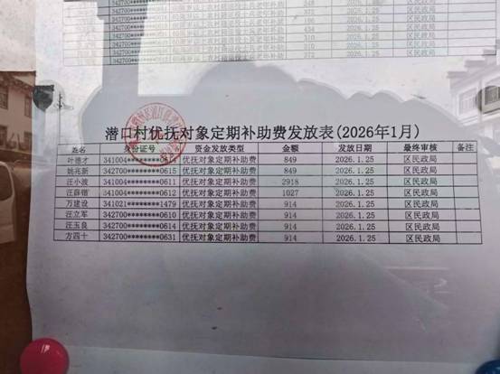 潜口村优抚对象补助发放公示 |