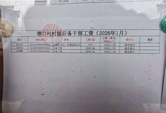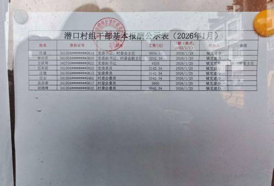 潜口村级后备干部工资发放公示 |
