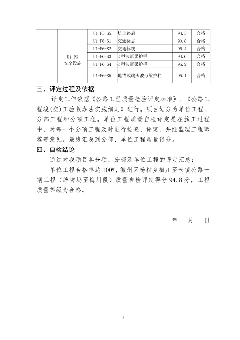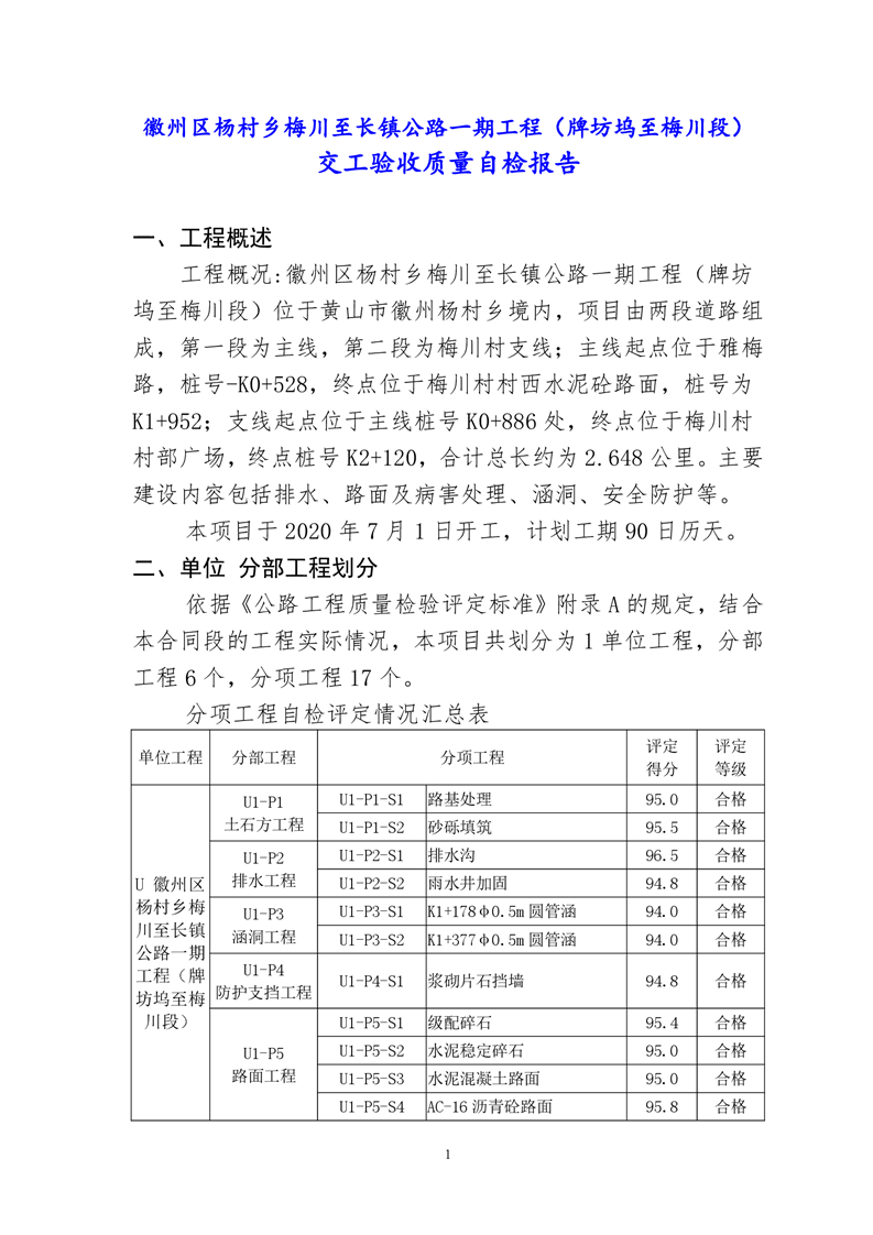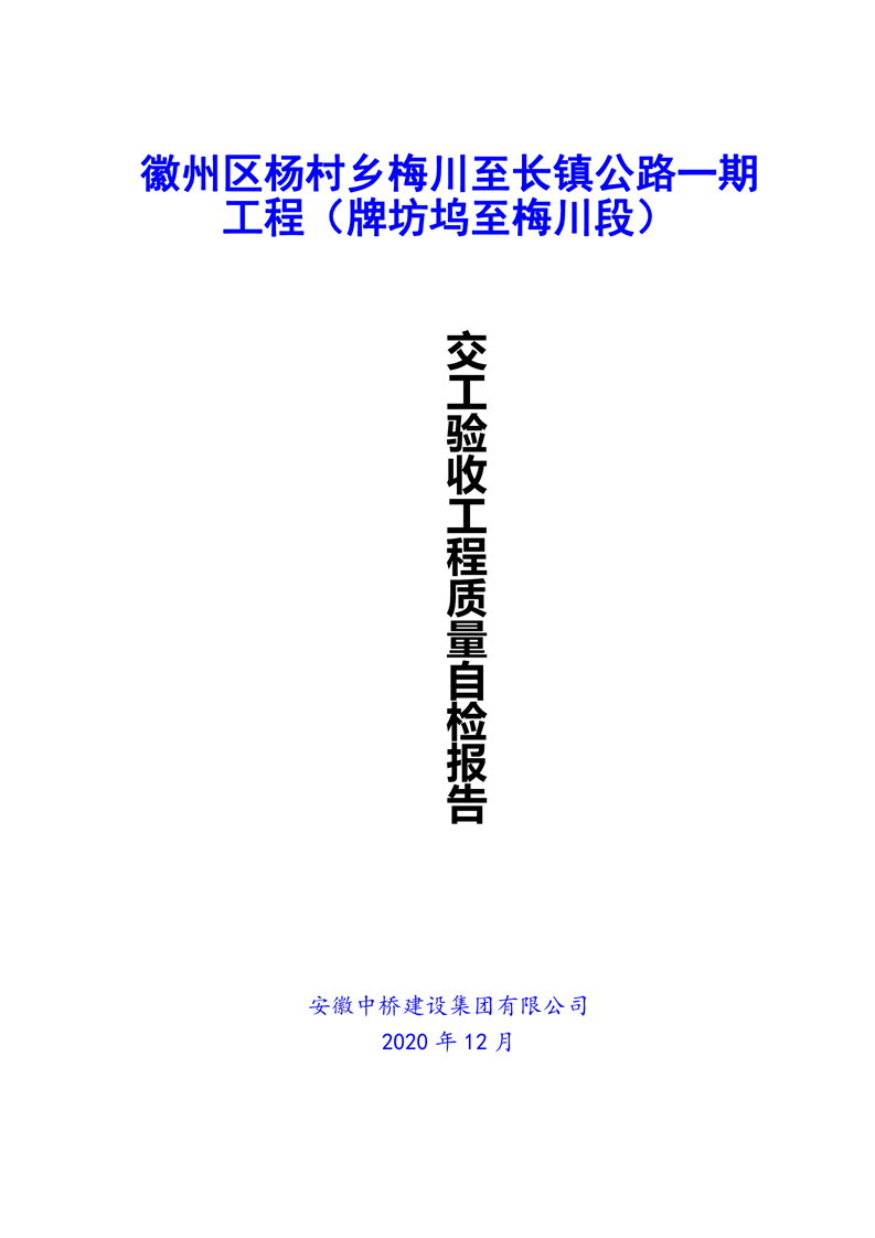 徽州区杨村乡梅川至长镇公路一期工程(牌坊坞-梅川段)交工验收质量自检报告