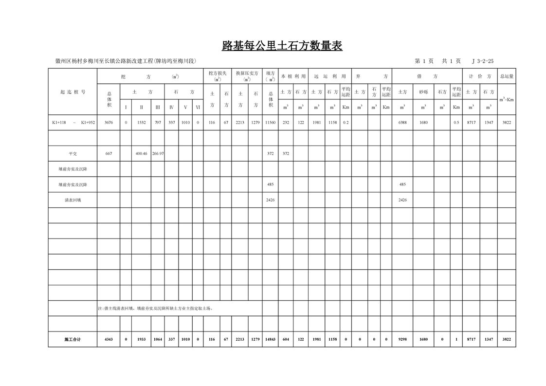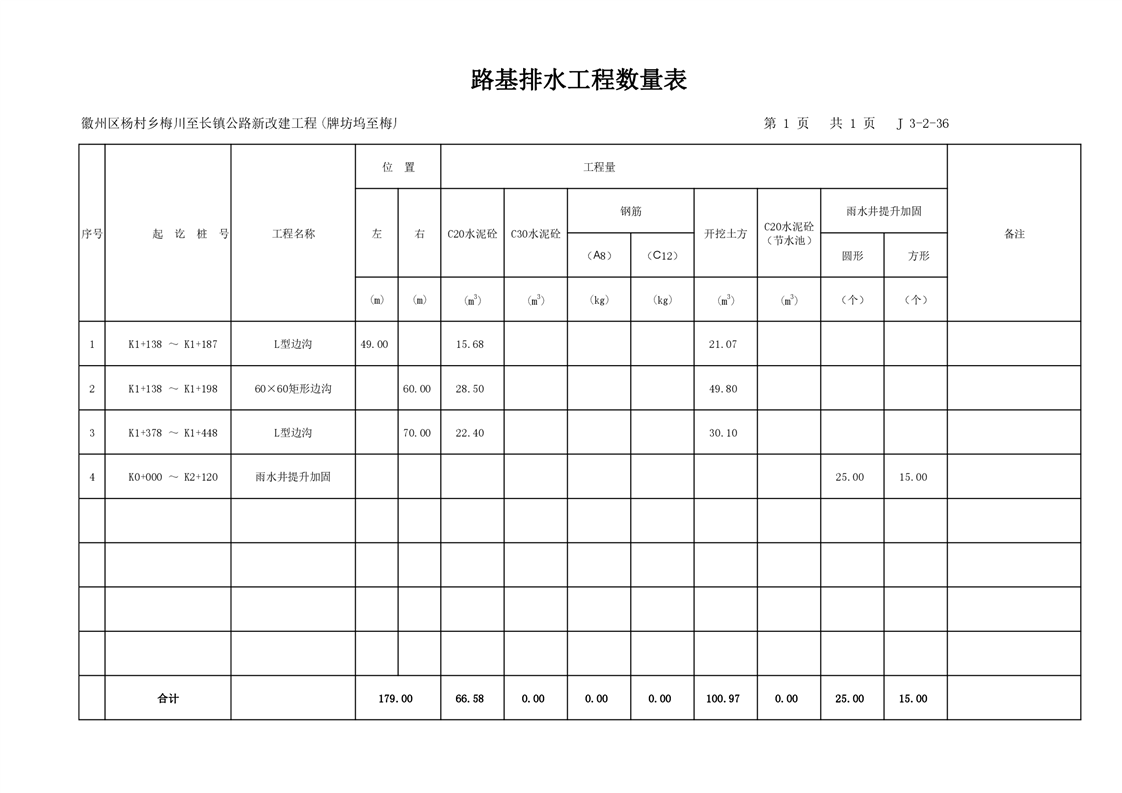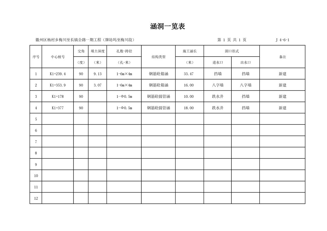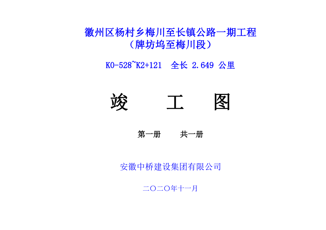 徽州区杨村乡梅川至长镇公路一期工程(牌坊坞-梅川段)竣工图