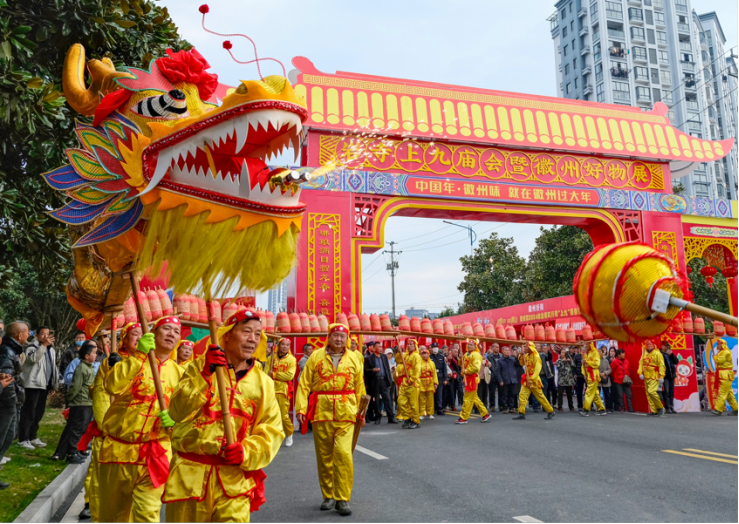 据了解,农历正月初九为唐朝忠烈张巡和许远殉难日,徽州区每年于此日举行庙会纪念,俗称“上九”庙会。活动以舞龙、民俗表演等形式直观地展示唐御史中丞张巡、睢阳太守许远抗击“安史之乱”叛军,死守睢阳,以身殉国的忠义事迹,生动地再现具有浓郁地方特色的传统非遗民俗,丰富春节期间群众精神文化生活。