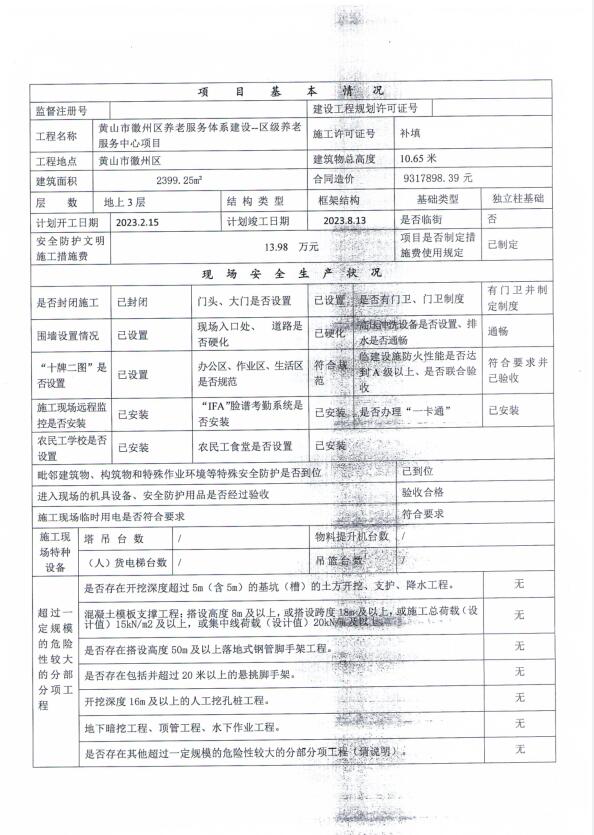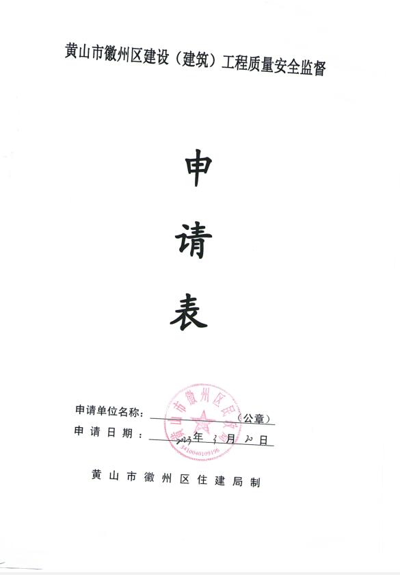 【质量安全】黄山市徽州区养老服务体系建设——区级养老服务中心工程建设(建筑)工程质量安全监督申请表
