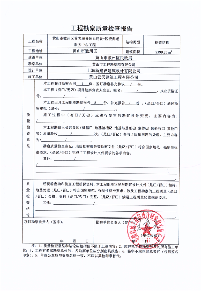 【质量安全】黄山市徽州区养老服务体系建设——区级养老服务中心工程竣工报告