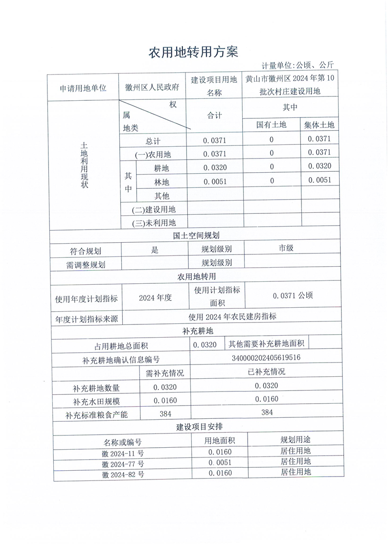黄山市徽州区 2024年第10批次村庄建设用地