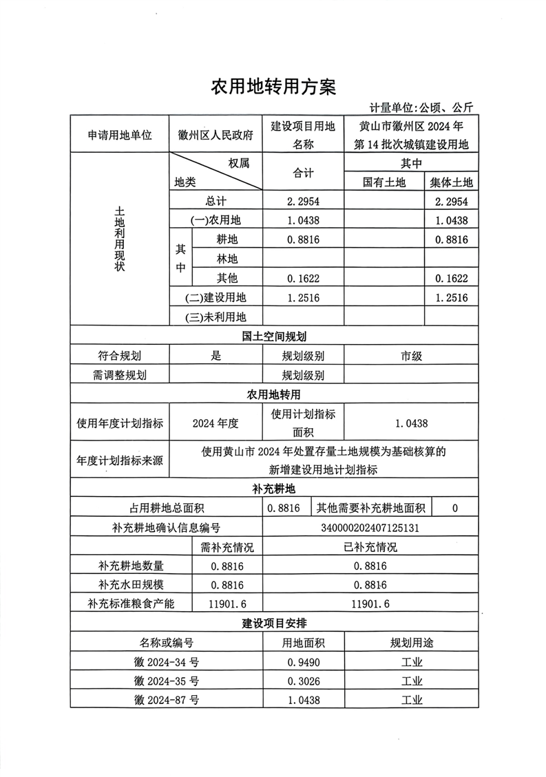 黄山市徽州区 2024年第14批次城镇建设用地