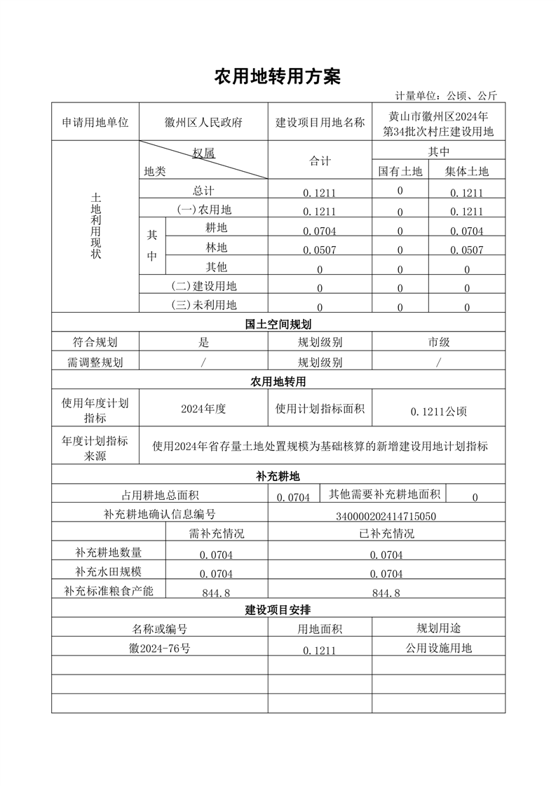黄山市徽州区2024年第34批次村庄建设用地