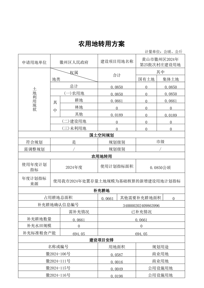 黄山市徽州区2024年第25批次村庄建设用地