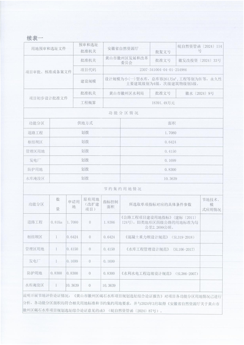 黄山市徽州区碣石水库项目
