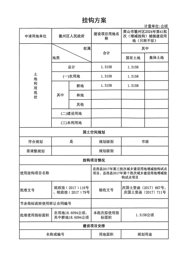 黄山市徽州区2024年第41批次(增减挂钩)城镇建设用地(只转不征)