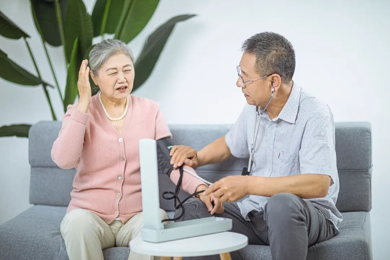 22.老年人突然出现一侧面部和肢体无力、麻木,语言不流利,眩晕伴恶心等症状,应立即拨打急救电话,紧急送到医院;若治疗后出现偏瘫、说话不清楚等后遗症,应尽早进行康复训练,并持续关注血压水平,将血压控制在正常范围。