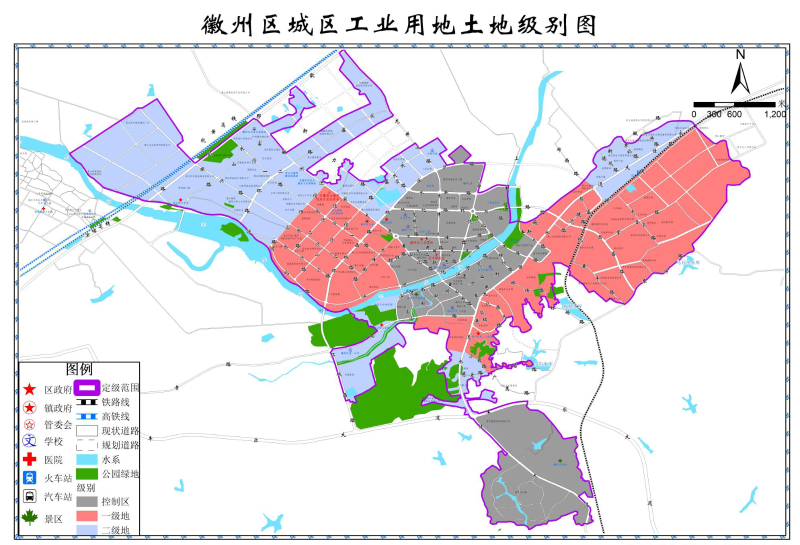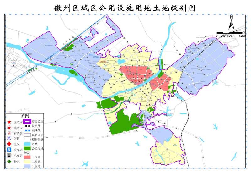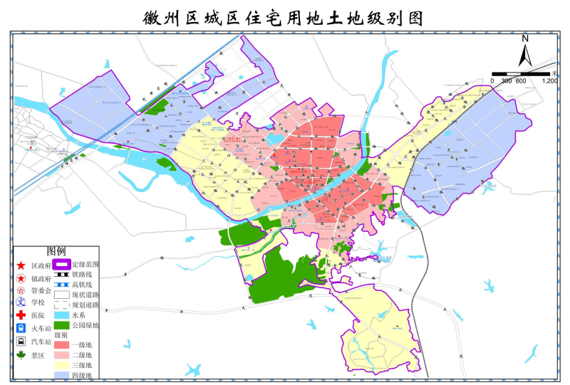 图1-3 徽州区城区土地级别图