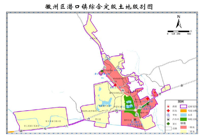 2、徽州区西溪南镇、潜口镇、呈坎镇基准地价表、土地级别分布范围表、土地级别图