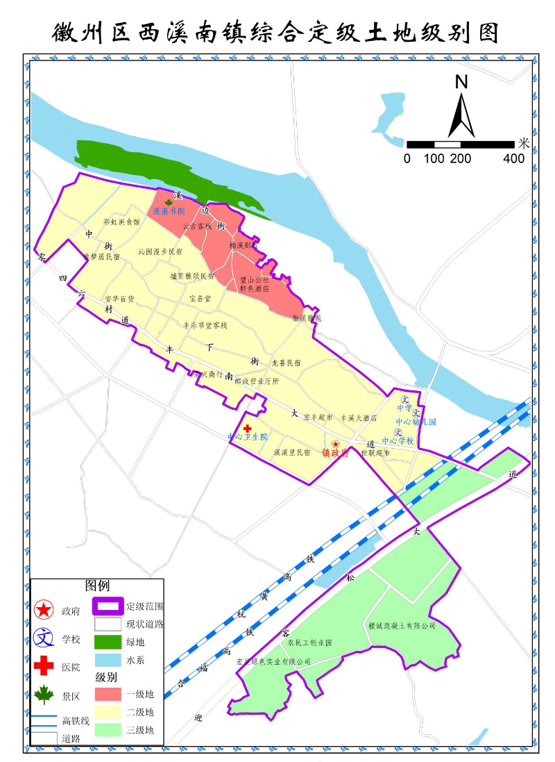 附件1 徽州区城区基准地价表、土地级别分布范围表、土地级别图