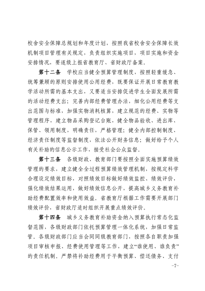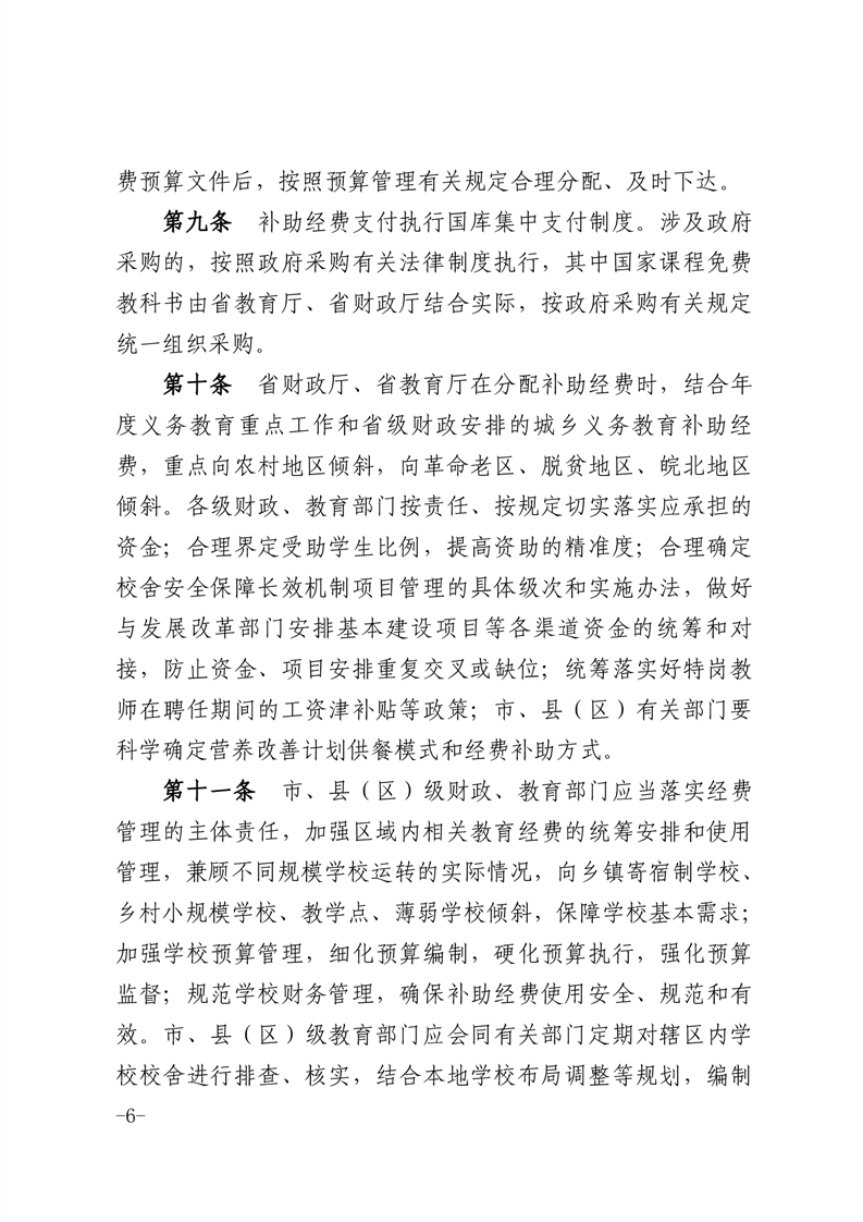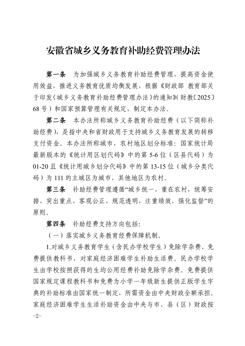 安徽省城乡义务教育补助经费管理办法