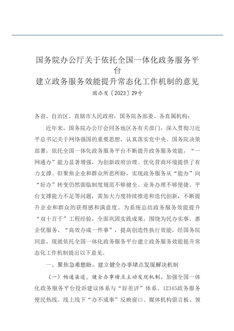 国务院办公厅关于依托全国一体化政务服务平台建立政务服务效能提升常态化工作机制的意见