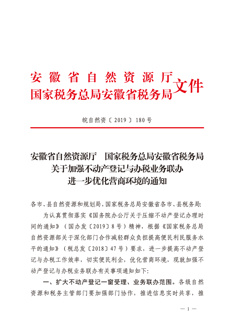 安徽省自然资源厅国家税务总局安徽省税务局关于加强不动产登记与办税业务联办进一步优化营商环境的通知