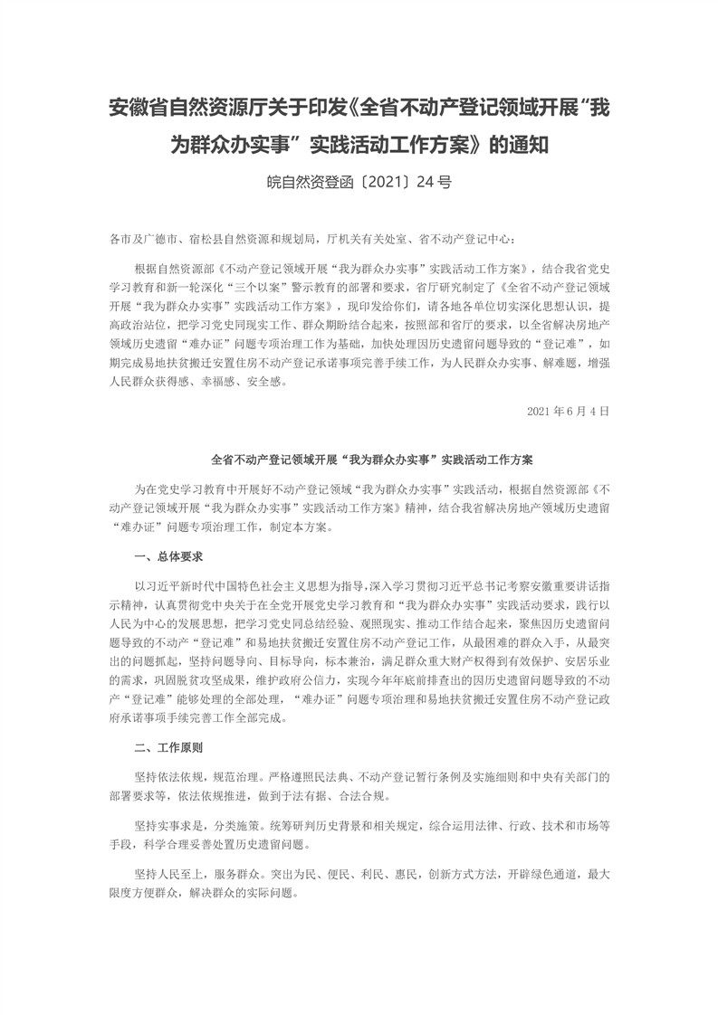 安徽省自然资源厅关于印发《全省不动产登记领域开展“我为群众办实事”实践活动工作方案》的通知