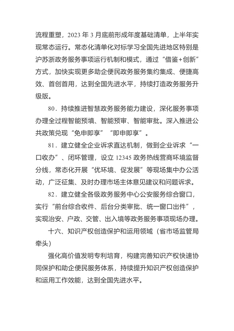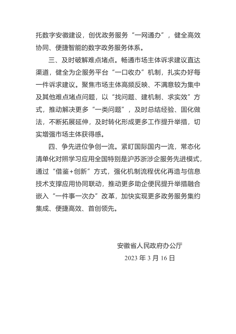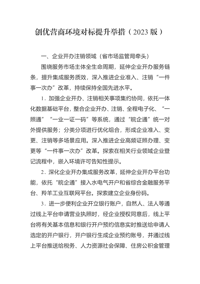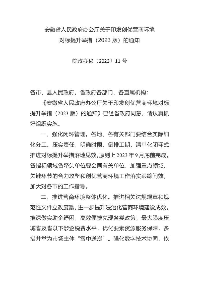 安徽省人民政府办公厅关于印发创优营商环境对标提升举措(2023版)的通知