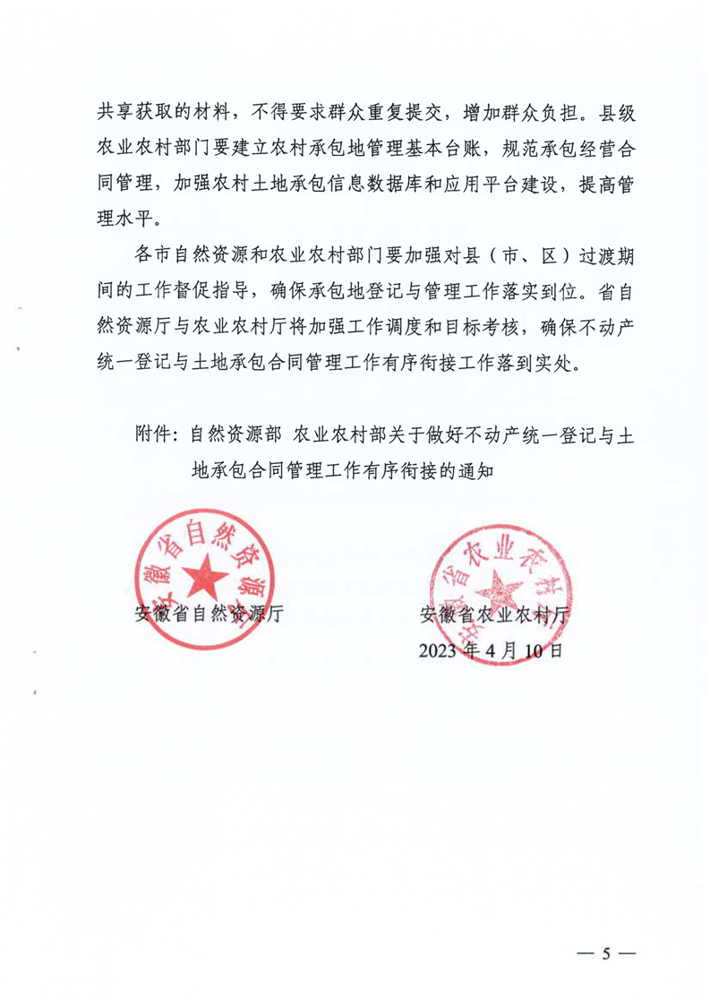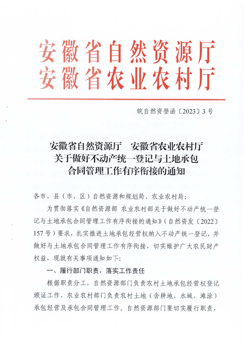 安徽省自然资源厅 安徽省农业农村厅关于做好不动产统一登记与土地承包合同管理工作有序衔接的通知