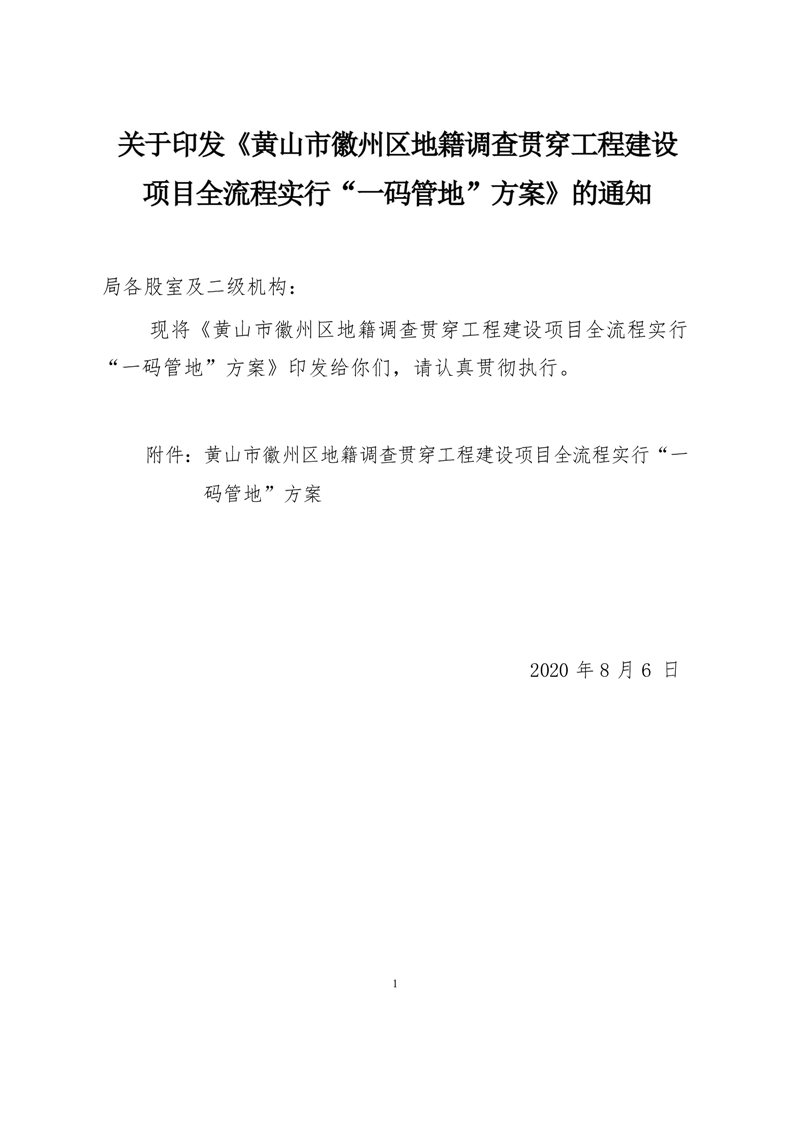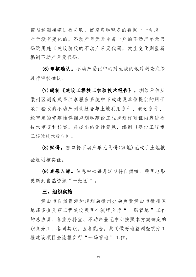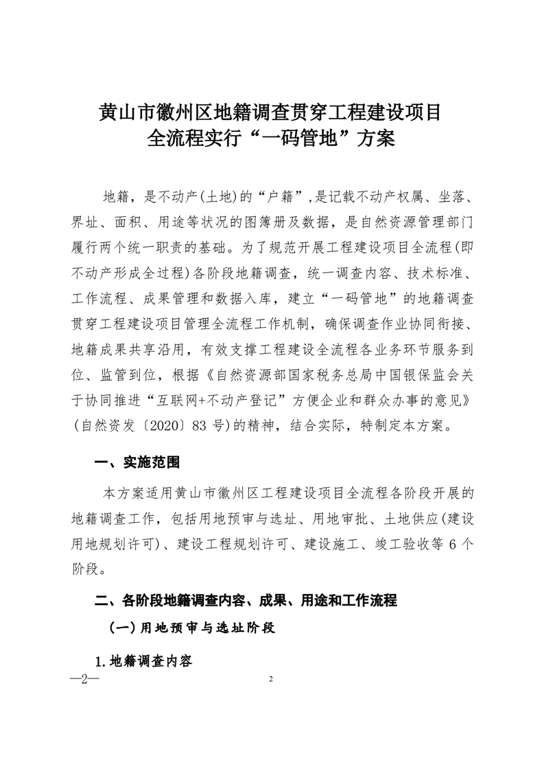 政策文件-黄山市徽州区地籍调查贯穿工程建设项目全流程实行“一码管地”方案