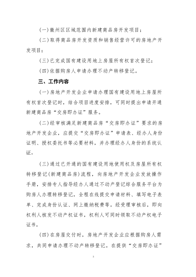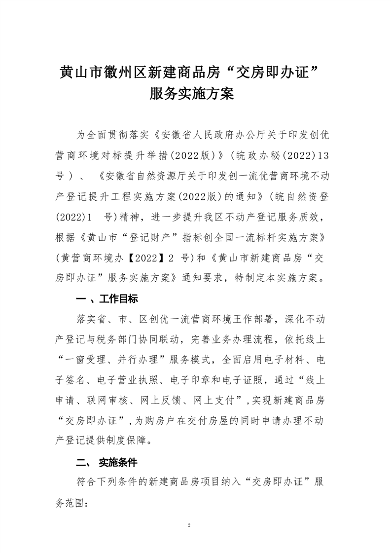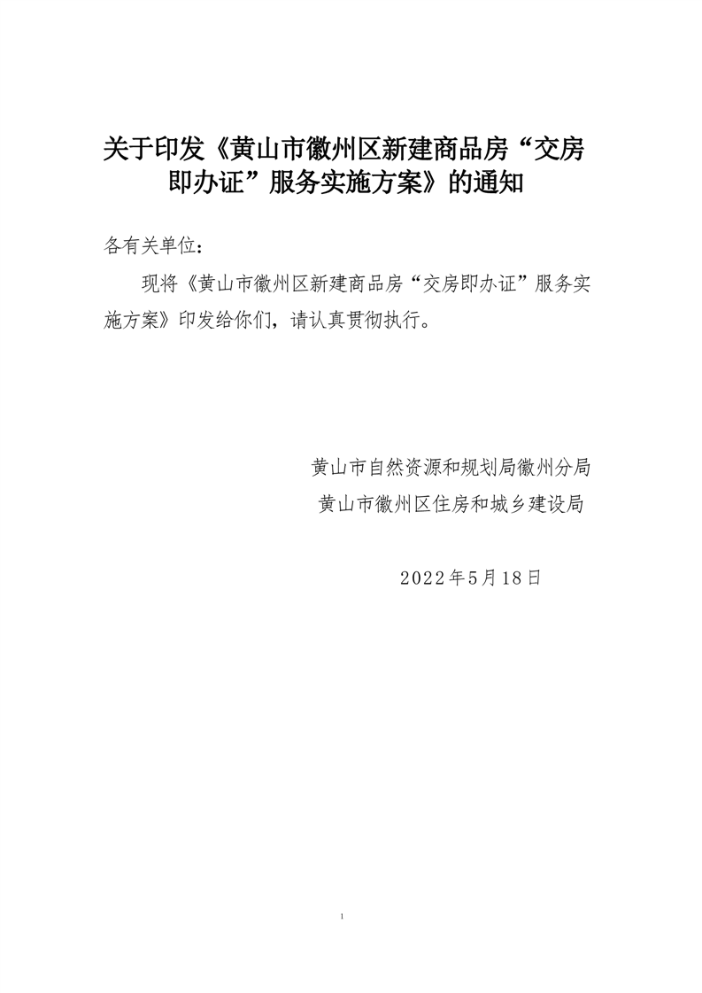 政策文件-黄山市自然资源和规划局徽州分局 黄山市徽州区住房和城乡建设局关于印发《黄山市徽州区新建商品房“交房即办证“服务实施方案》的通知