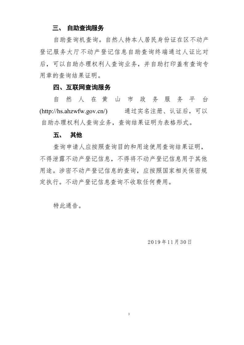 政策文件-黄山市自然资源和规划局徽州分局关于提供不动产登记资料查询服务的通告