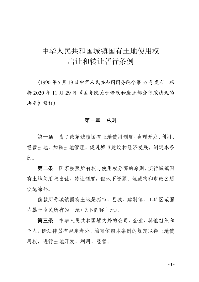中华人民共和国城镇国有土地使用权出让和转让暂行条例