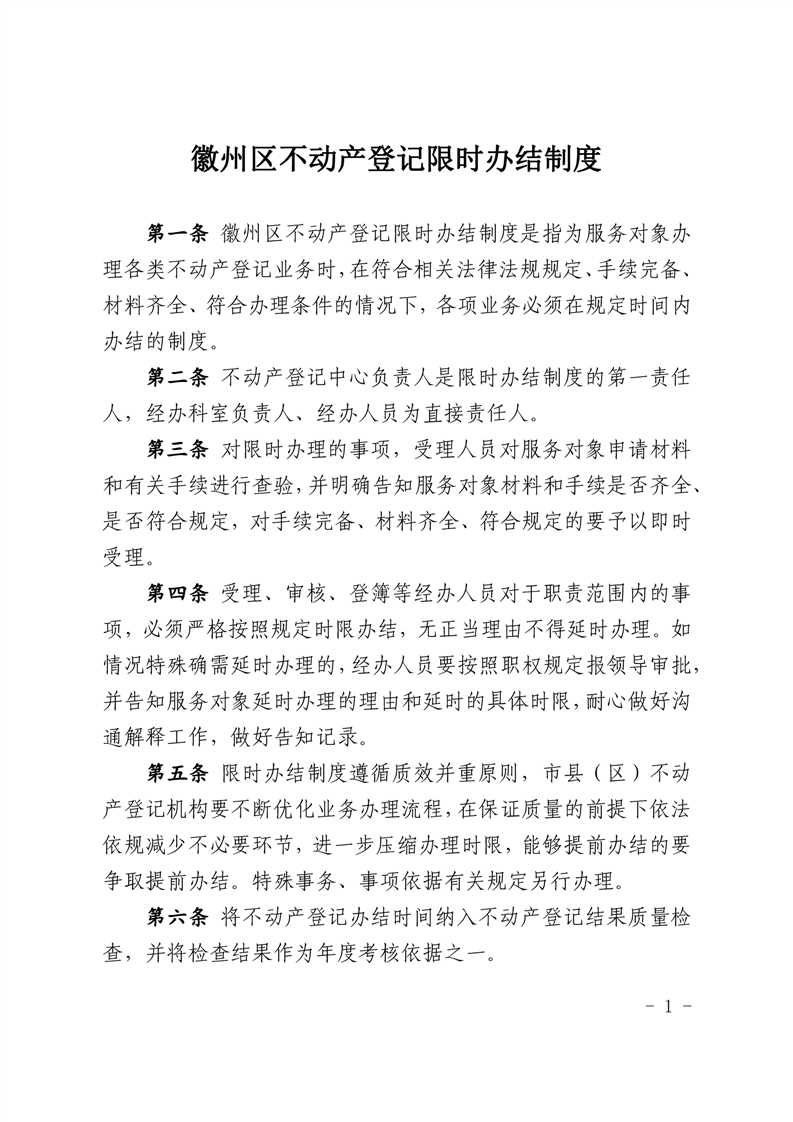 不动产登记限时办结制度