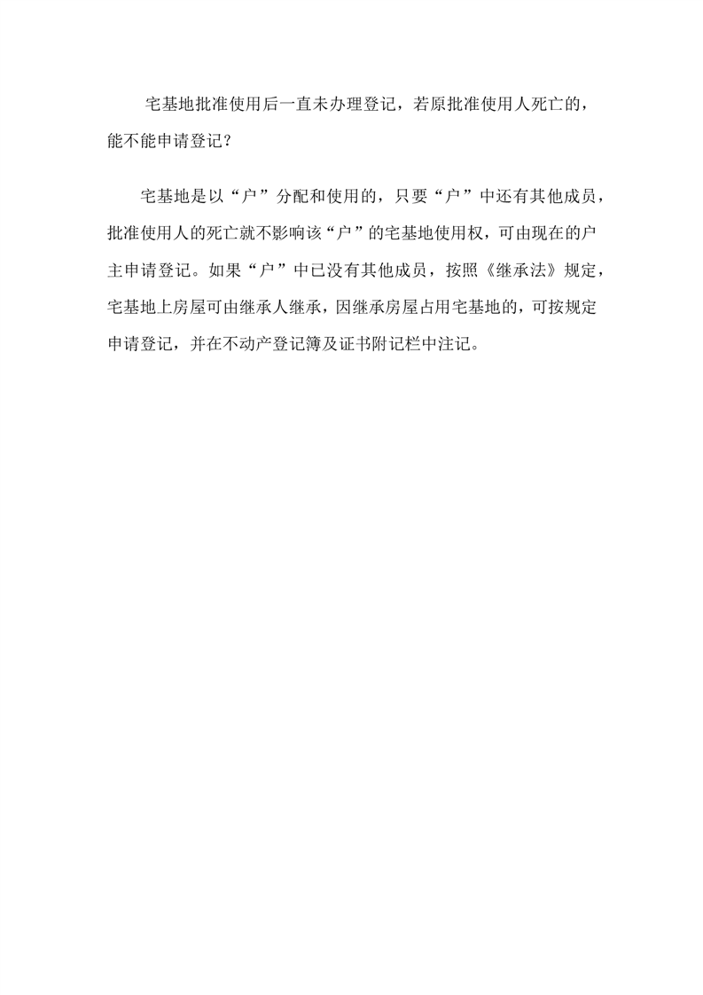 √宅基地批准使用后一直未办理登记,若原批准使用人死亡的,能不能申请登记?