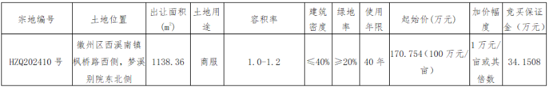 二、竞买人资格及条件:1、HZQ202410号地块中华人民共和国境内外的法人、自然人和其他组织(除法律、法规另有规定外)均可申请参加,申请人可以单独申请,也可以联合申请;2、HZQ202410号项目房屋达到交房条件后,黄山市自然资源和规划局徽州分局可提供“交房即办证”服务,土地竞得人可实现“交房即办证”。