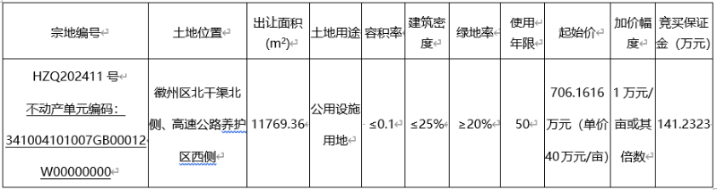 经黄山市徽州区人民政府批准,黄山市自然资源和规划局徽州分局委托黄山市公共资源交易中心以挂牌方式出让以下1(幅)地块的国有建设用地使用权。现将有关事项公告如下: